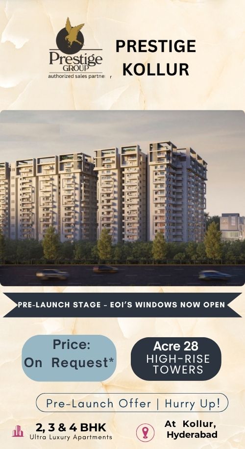 Why Choose Prestige Kollur? Prestige Kollur Hyderabad is a premium residential project by the trusted Prestige Group, offering modern Prestige Kollur apartments and Prestige Kollur flats in 2 BHK, 3 BHK and 4 BHK configurations. With thoughtfully designed Prestige Kollur floor plans, contemporary interiors and world class Prestige Kollur amenities, this project provides a comfortable and luxurious living experience for families of all sizes. Its strategic Prestige Kollur location ensures excellent connectivity to major IT hubs, schools, hospitals and shopping centers, combining urban convenience with peaceful surroundings. Investing in Prestige Kollur residential project not only gives you a premium home but also a promising Prestige Kollur investment opportunity. With competitive Prestige Kollur price options, easy Prestige Kollur booking and RERA compliance (Prestige Kollur RERA), the project assures transparency, safety and long term value for both homeowners and investors The atmosphere is delightful and the epitome of luxury with world-class features and technologies. The international standard faucet, vitrified tiles, and modular kitchen are some of the features that you will enjoy in this Project